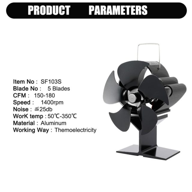 Cheminée noire 5 pales poêle à chaleur ventilateur bûche brûleur à bois eco-fan foyer silencieux ventilateur de cheminée répartition efficace de la chaleur